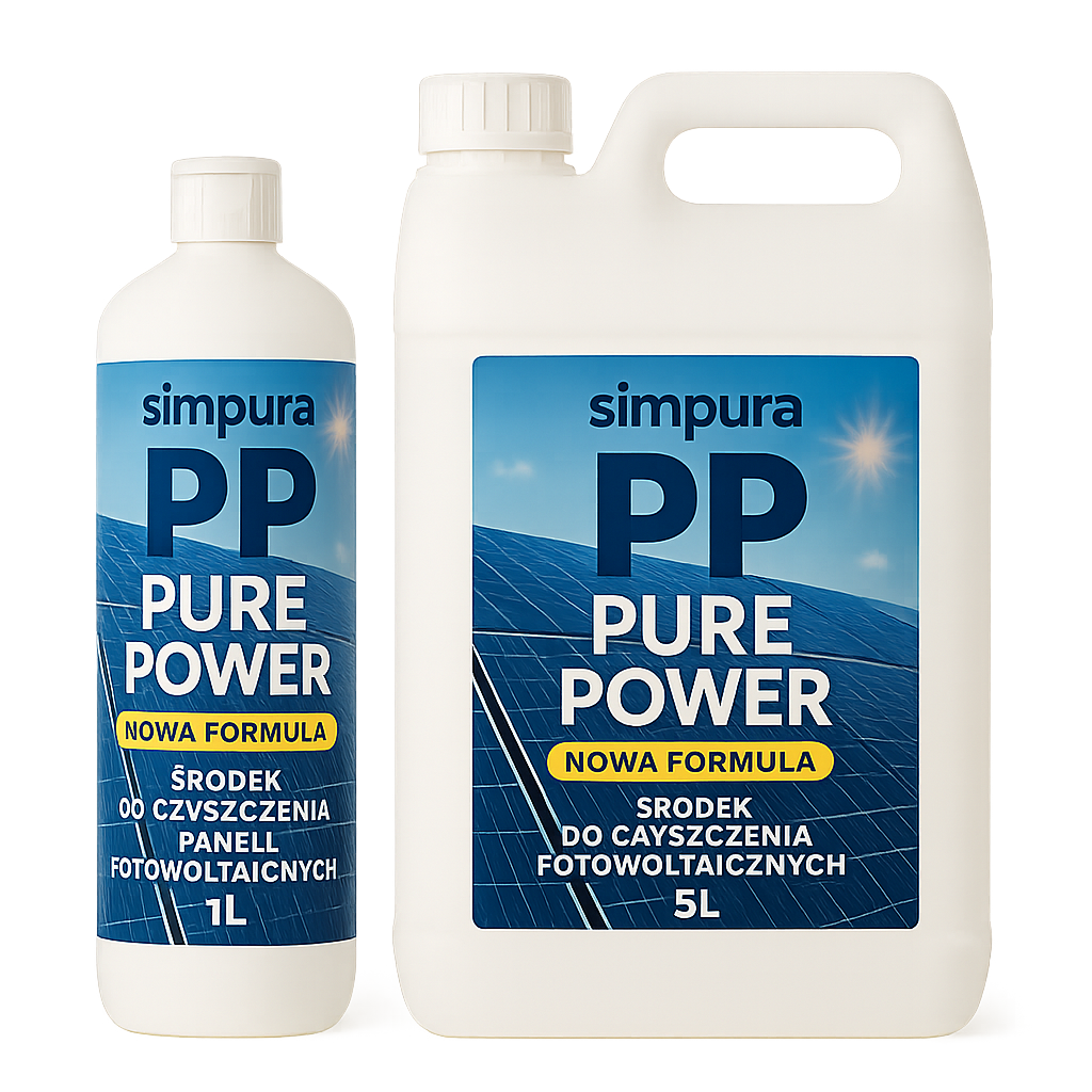 Zadbaj o czystość instalacji, które dostarczają energię do Twojego domu. Pure Power marki Simpura to profesjonalny preparat do czyszczenia paneli fotowoltaicznych i kolektorów słonecznych – gotowy do użycia, bez potrzeby rozcieńczania wodą.